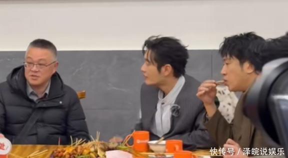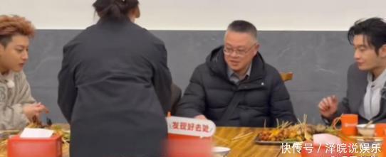 王鹤棣的老爸一欢欣,就请黄晓明和黄子韬他们在店里吃炸串了。