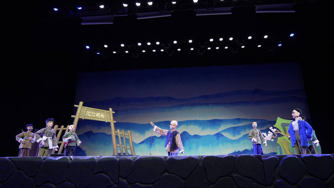 这次入选展演的《少年张大千历险记》,是资中木偶剧团的经典力作,该剧以内江籍国画内行张大千的少年阅历为原本,以他修业回乡途中遇到匪徒的故事为干线,通过《绑票》《师爷活命》《雅贼》《义救樊天助》《招抚・兵变》五幕内容,天真展现出少年张大千濒临逆境时的勇敢、闪耀与侠义。
