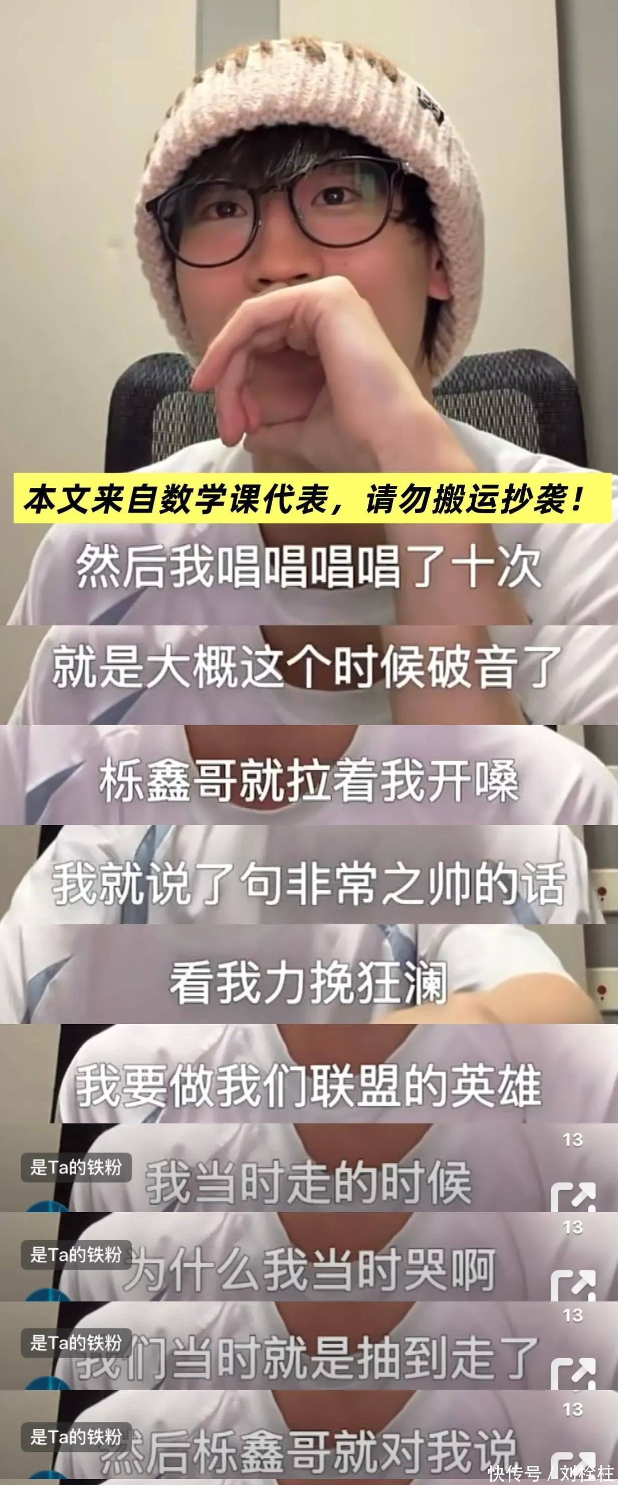 我本认为刘彰哭是因为小九说的那番话,说没能带刘彰去到总决赛等等,说完我认为刘彰感动哭了,可是据昨天刘彰在直播中坦言,他那时哭其实隧谈是因为王栎鑫!