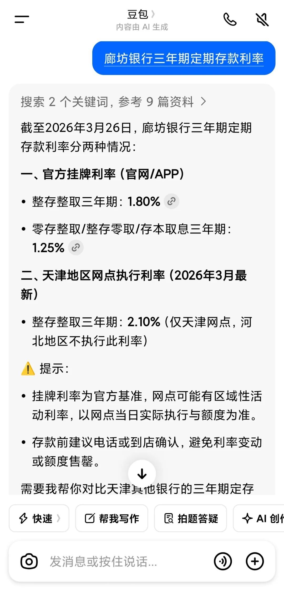 比如,前文提到的银行利率不符,豆包笔据各家城商行的信息,推导出了可能的利率区间,但关于具体的银行来说,这种信息足够舛讹。